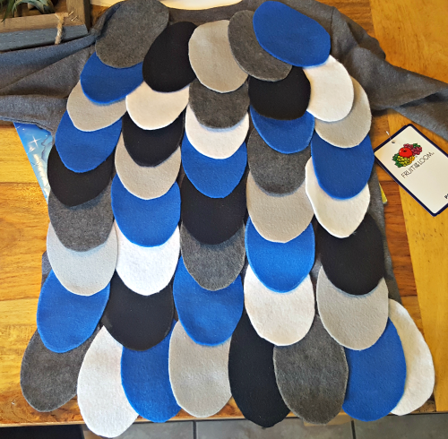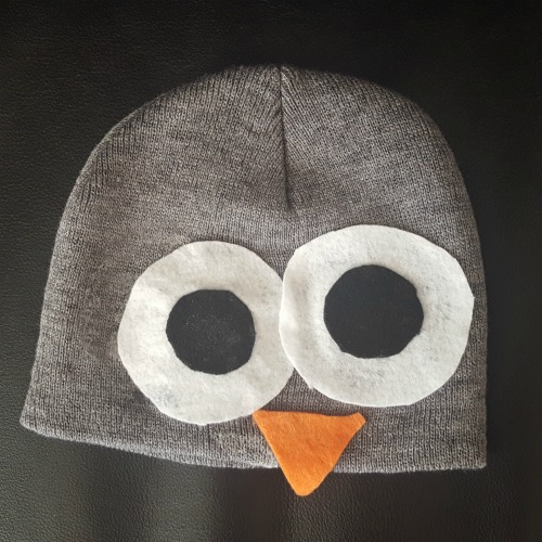 Végül a filcekből (fehér, szürke) vágj ki levélmintákat, szemeket, csőrt és ragaszd fel a poncsódra és a fejpántra.